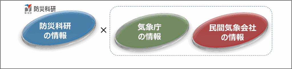 その中核には、気象・地震分野で高度な研究を行う国立研究開発法人防災科学技術研究所の最新の気象情報を活用しています。