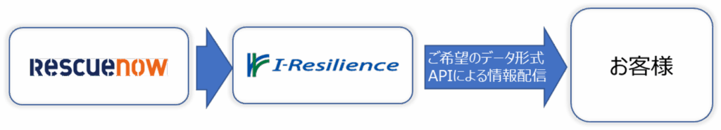 Iーレジリエンスは、株式会社レスキューナウが収集・配信する危機管理情報についてその取扱いを株式会社レスキューナウより正式に認められた正規代理店です。鉄道運行情報やライフライン情報(電気、ガス、水道など)について、IーレジリエンスにてAPI化を行い情報提供を実施しております